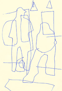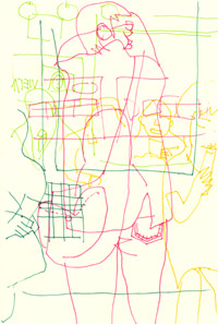 ポッキー 油画、キャンバス / 14.0 x 18.0cm(F0) / 2005 ボールペンで描かれた原画の線の形はそのままに、 油絵具のグラデーションのを加えてみた実験作品。 ご参照ください >>> 「即興線画展開。」 |