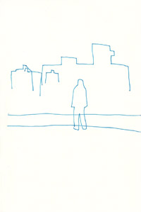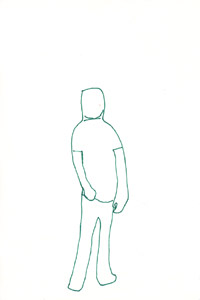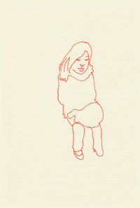 座ってる人 絹糸、キャンバス / 14.0 x 18.0cm(F0) / 2006 電車にて。超シンプル。 糸onキャンバスシリーズの最も初期に制作された作品のひとつ。 丸く閉じたかたちを描けるかどうか初挑戦した作品です。