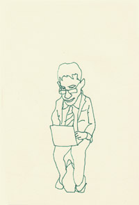 ノート 絹糸、キャンバス / 22.0 x 27.3cm(F3) / 2006 電車にて。ノートパソコンを広げる若いビジネスマン。 むっちゃ集中してます。