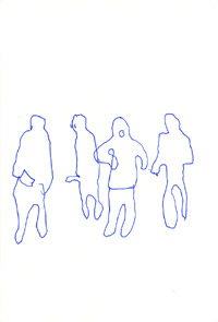スィッパーズ 絹糸、キャンバス / 14.0 x 18.0cm(F0) / 2006 平日朝、三鷹駅改札にて。次々構内へ入ってくるサラリーマンたちのシルエット。