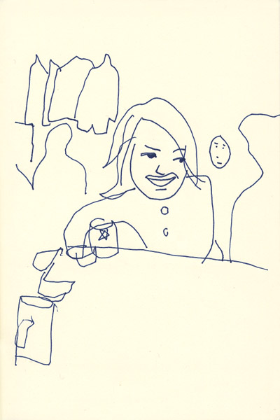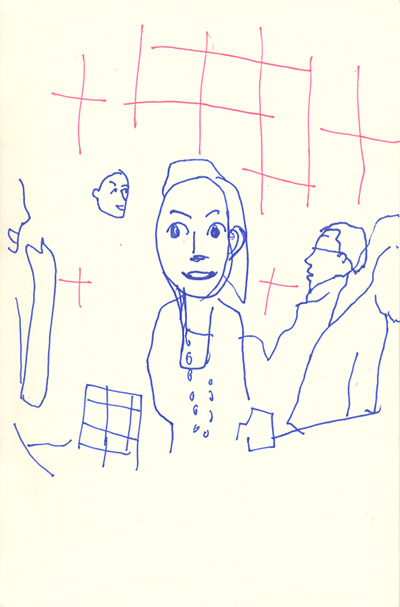 終盤、長蛇の列にびっくり。お待たせしまくりなので、そこらへんのお客さんに似顔絵サービス。その1 |