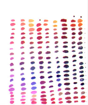 だんだんだん (DAN DAN DAN 1999 oil on canvas 45.5x38.0cm) 色と色を混ぜるとまた別の色が出来る。当たり前す ぎるけど、不思議なことだと思いませんか?もうす でに色の科学は体系づけられていて綺麗な立体色相 環なんかもある。でも、もっともっと実感したい。 絵具と友達になりたい! ぼくがよく使う絵具20色から得られる2色の組合 せが全部で190通り。それぞれ混色比3段階、さ らに白色混合を3段階という具合で混色実験を行う。 色見本を作るのではなくて、ひとつの絵具から別の 絵具によって引き出される性質を見詰めなおすのが 目的でした。 で、↑これはその19枚の連作のう ちの1枚。構図は計画せず、パレットも使用せず、 キャンバスの左上の隅から順番に、直接そこで絵具 を混ぜ合わせる。効きの強い絵具、弱い絵具、初め て混ぜる組合せなどもあり、そこに置かれるべき色 を作るために使う絵具の量は一定にはなりませんで した。が、それでかえっていい感じの絵になったよ うに思うのですが、いかがでせう?(またまた讃美) 不揃いの色たちが踊っているようにも見えるし、上 下をひっくり返すと、土の中から植物がだんだん成 長していく姿にも見えるので、「だんだんだん」と 名付けました。 I like oil painting because it enables to go on painting as I feel. But one day, I found I was shut in my habits of using colors or touchs. I couldn't have understood what oil colors are though I'd used them to paint for long time. So I tried switching colors themselves to subject. I got 190 combinations from my favorite 20 colors. I blended every combination in 3 steps , and blended them with white in 3 steps. I could taste properties of each color. (19 canvases were needed. One of them is on the upside↑.This one is the study about Cadmium Red Purple.) I didn't make a composition carefully and didn't use a palet. I blended colors directly on canvases. It let them irregular and humorous. They seemed to be dancing. Turning upside down, they looked plants growing gradually.That's why I named this series of works "DAN DAN DAN". (' Dan-dan ' means gradually in Japanese.) |