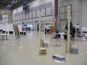 3月11日土曜日、ちょっと早めに台場に到着。 しかし、トラックヤードは、すでに混み混み。なんだか既に、熱い。 午後五時、搬入開始! 今回は、バシッとでっかく、絵一枚見せたい。 車に乗らない大きさゆえ、現地組み立て式。 時間に余裕はないぜ。 出席したい、すぐそばのステージで繰り広げられる前夜祭を、時々横目に 必死の設置作業。 糸を使って絵を描く計画なんだけど、この日は下準備まででタイムオーバー。 想定通りのスリル。...ていうか、もう少しで想定外。 助手君にタイムキーパーを頼みながらの、3月12日日曜日、朝6時。 残された時間は、あと3時間! しかし、最高のクオリティーを要するのどぁ! これからお送りするのは、本邦初公開! 「 ララバイ(橿原神宮前行き)~GEISAI#9 version 」制作の記録です。>>>>>>>>> |