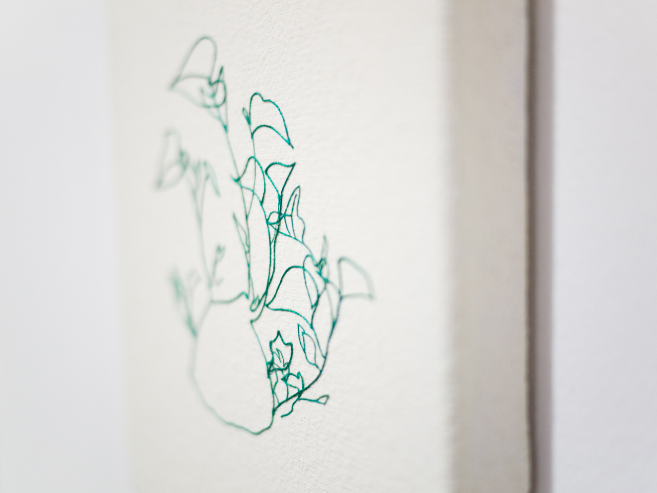 「芋いのち」 さつまいものヘタを切って、小皿に水を差して窓辺に置いていたら、ぐんぐん伸びた。 綺麗だし、奇妙だし、愛おしいので描いた。 芽吹きの季節とは違うが、年の初めに もってこいの画題なのでシリーズに加えた。 細かな点については、先述の小さい5作品と同じ。 小さい作品には、その発色の良さとしなやかさから絹糸を愛用しているが、 今回は、絹糸の二重螺旋を解いて作った、極細の線も活躍している。 小さいのは、なかなか大変。 以前は形にするのが精一杯な感じがして、それって何か違う...と、しばらく作らなかったが、 最近の作品制作過程で「糸」ともっと仲良くなれたので、今なら!と思い挑戦した。 絹糸極細の開発、接着剤の成分、粘度調整や、その他細々した点を改善。 相変わらず難しいものの、「表現の自由度」が上がったと感じている。(要するに楽しい) なので、今後もよろしく。 いろいろなお客さんと話しながら、 いろんな角度からの質問があるものだなと改めて実感。 そんなわけで、いつものアーカイブより細々としたこと書いてみた。(マニアック?) シンプルならば、深めたい。 歩幅小さいけど、必ず進んでいくつもり。 即興の原画と、熟考の糸画。 絵なのに糸。糸なのに縫わない。重要なのは線。 日常の光景にある線は、固定された実体ではなくその時々で変化して見えるかたち。 不確定な世界のかたちを、意識的または無意識的に、自分で選んで決めている。 それが「線」の正体のようなもの。 瞬間を「辿る」感じ。 同じ景色が目に映っても、みんなそれぞれ少しずつ違った見方をしてるはず。 その他諸々、感じ方の違い。 「わたし」と「わたし」の間。 共感と新鮮。 そのちょっとしたとこを、くすぐっていきたいと思う次第。 蘊蓄... 淀テク / 泰平 / いしかわ / 総括 写真... 淀テク / 泰平 / いしかわ / 総括 |