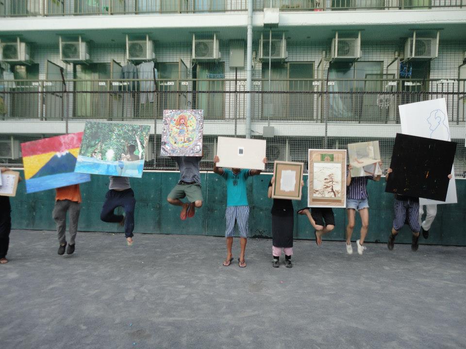 「あくびおじさん」とわたし。撮影者の要望により髪が写りやすいようにこのポーズ。 ぶりっこしているわけではないので悪しからず。(写真六枚提供:寿オルタナティブネットワーク) こぼれ話、たくさんあるんですが、ちびっ子のかわいい襲撃に遭ったり、 おっちゃんたちと一緒に笑ったり、とにかく、参加できてほんとに楽しかった。 三年前、作品制作のためにこの町に通っていた時には感じる事の出来なかった感覚。 ずっと緊張していたのかもしれない。久しぶりに訪れて感じたのは、懐かしさに似てるような、 そんなわけないはずの気持ちでした。打ち上げでふつうにおっちゃんと乾杯。 僕は密かに泣きそうでした。 そして、「つるむのも悪くねーな」なんて思いました。 僕一人じゃぜったい無理だ。作品は常設してあるのに、それはおっちゃんたちの入る事のない場所。 近くて遠い距離が象徴していたと思う。今回出掛けられて良かった。 この町はシビアだけど、向き合ってきたアーティストたちそれぞれがのばし、つながった掌が あって、僕もそれに助けられているような、そんなかんじです。 アートが何かを解決するわけじゃないけど、 楽しいことを増やすのは、きっと悪い事ではないはずだと。そんなことを思いました。 幸田さん、皆さん、ありがとね。 さてさて、ちゃんとした情報はこちら! arukue.exblog.jp 神奈川新聞にも掲載されました〜。 http://news.kanaloco.jp/localnews/article/1209110001/#article_comments 2012.0915.KAZUHARU