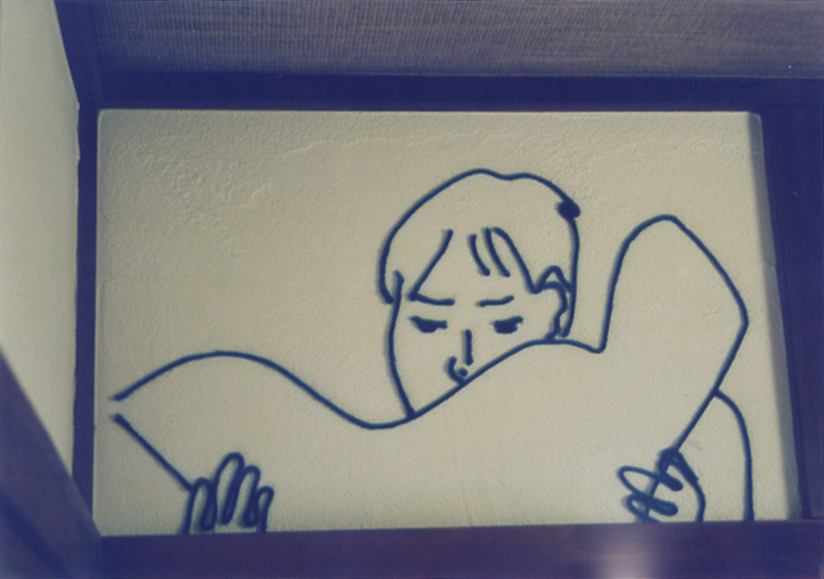 ララバイ 2005.12/12~24 roji cafe 先の個展『東京日和』は、おかげさまで多くの方から好評をいただきました。 そして年末、 会場となったロジカフェさんは、2005年に行われた展示を振り返る総集編的リレー式グループ展 " roji ART EXHIBITION "を企画。その1コマを担当することになりました。 すでに関西での個展が決まっていたのですが、「年末ひっぱり凧=オレってスター??」 という思考のもと、引き受けました。 初となる「東西同時開催」は、なかなか大変なものでした。 今考えると、実現できたのがウソみたいな感じがします。 実は、設置を終えたのが開店数秒前という、ビストロスマップ級のスターぶり。 そんなんでも、カフェスタッフの皆さんは慌てずに見守ってくれました。...........ぼく子供です。 さてさて、その展示内容。 「アンコール」の意味が強いと思い、引き続き、即興線画を主役にしました。 新旧作織りまぜて、客室をアレンジ。 そして今回は、ロジカフェ店長の名倉さんによるインタビューもあり、 またまたスターっぽくなった気分.....じゃなくて、より深く味わっていただけたのではと思います。 展示の様子 / インタビュー |
